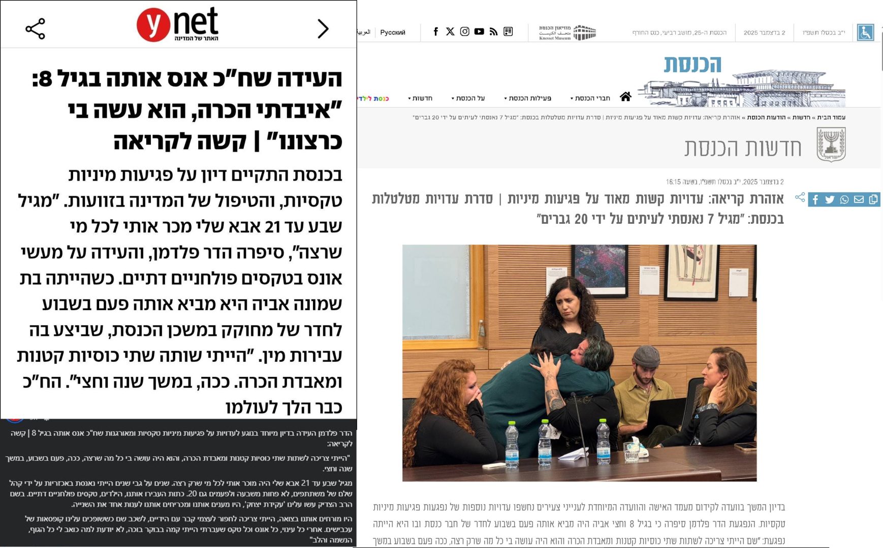דיווח בישראל היום על הדיון שנערך בכנסת בנושא פגיעות מיניות טקסיות