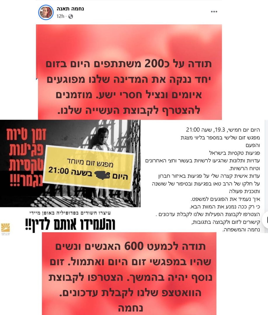 נחמה תאנה מנהלת זומים וקבוצת וואטספ – ניתן ללמוד על כך בפרופיל שלה בפייסבוק