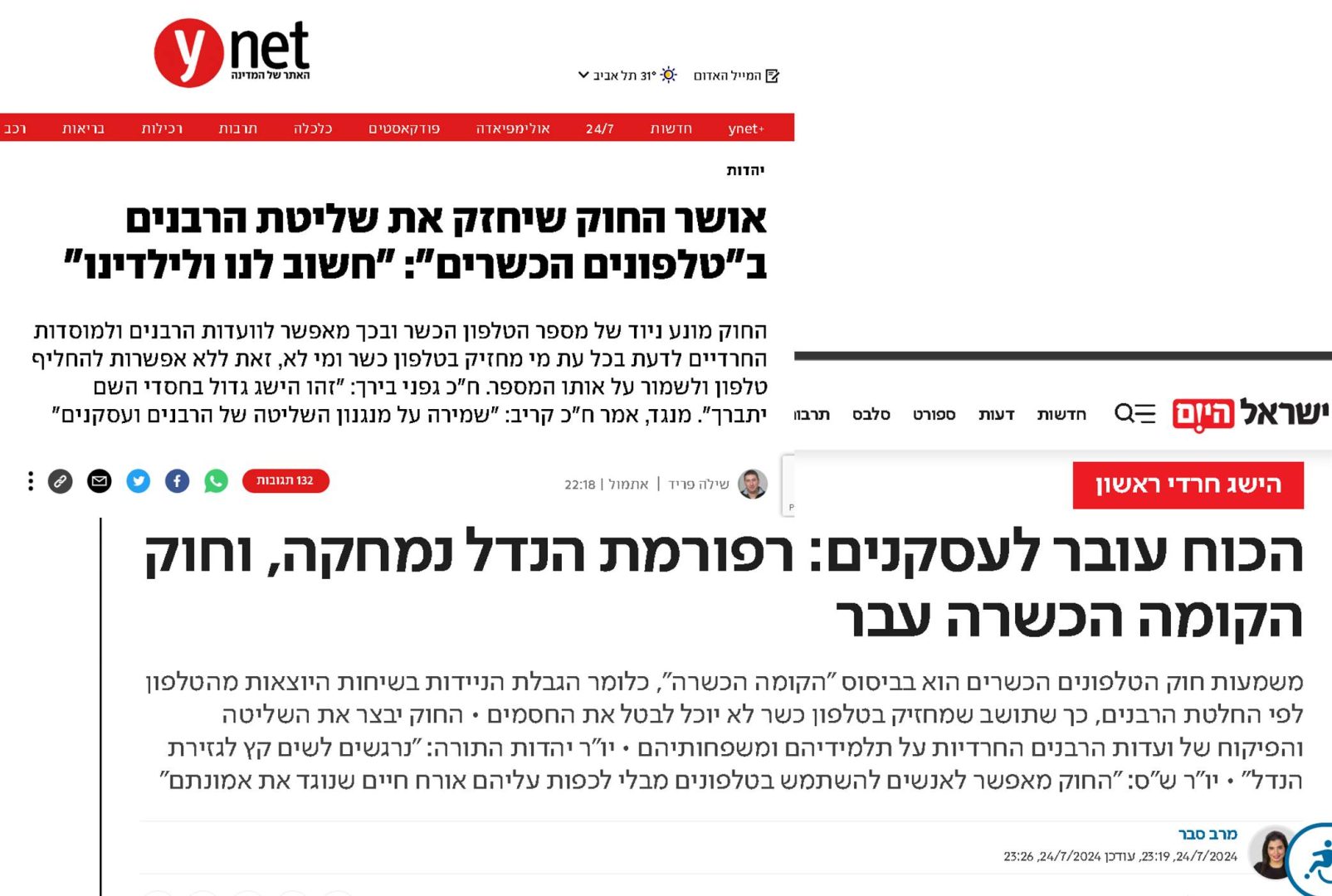 סקירת חוק הטלפונים הכשרים החל מדקה 21:38 – בקישור הבא