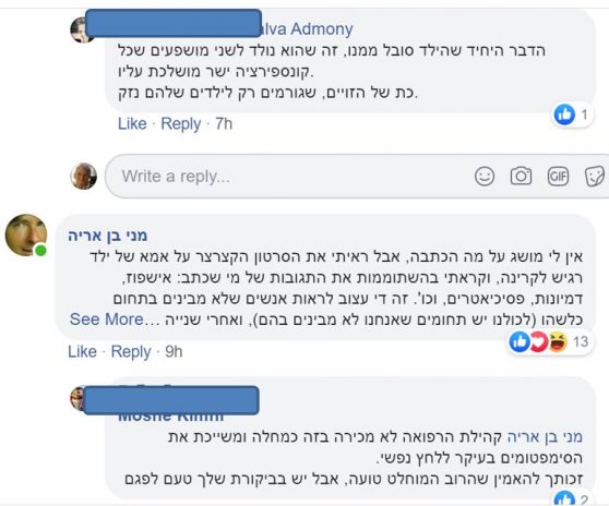 ודיון ארוך בדקה 34:40 – שוב זה מתחיל באם ההיסטרית, שבכתה לגבי ילדתה המפחדת מ"חיישן". לצערנו, צילום זה מככב לאחרונה בכל מקום (לא מאתמול.. ראיתי את זה כבר קודם אבל זה עסיסי ומביאים את זה שוב ושוב ולועגים לה. התגובות אליה ברשתות שליליות מאד. אתמול היא רואינה ב"צינור" אצל גיא לרר וזה היה רע מאד עקב חוסר הידע שלה – ניתן לראות למטה בהמשך הפוסט)