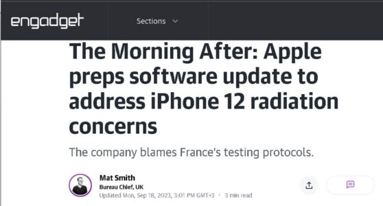 השבוע אסר רגולטור הקרינה בצרפת מכירה של מכשירי iPhone 12 של אפל, כיון שבדיקות המכשיר העלו, כי הסמארטפון חרג ממגבלות החשיפה לקרינה אלקטרומגנטית באירופה.