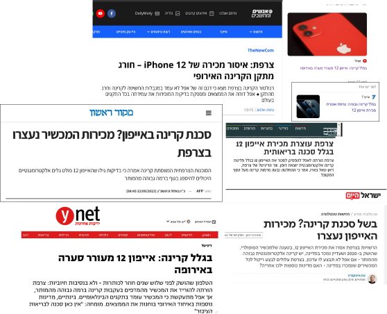 מקור ופרסומים לגבי איסור שיווק אייפון 12 בצרפת: