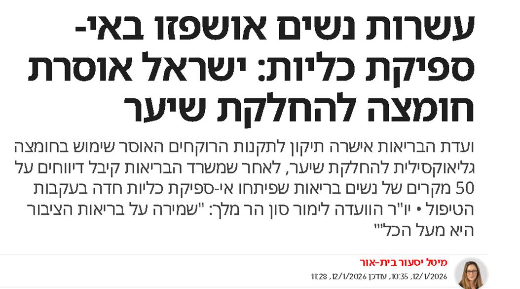 בקישור – חומר רקע לדיון בנושא בועדת הבריאות בכנסת