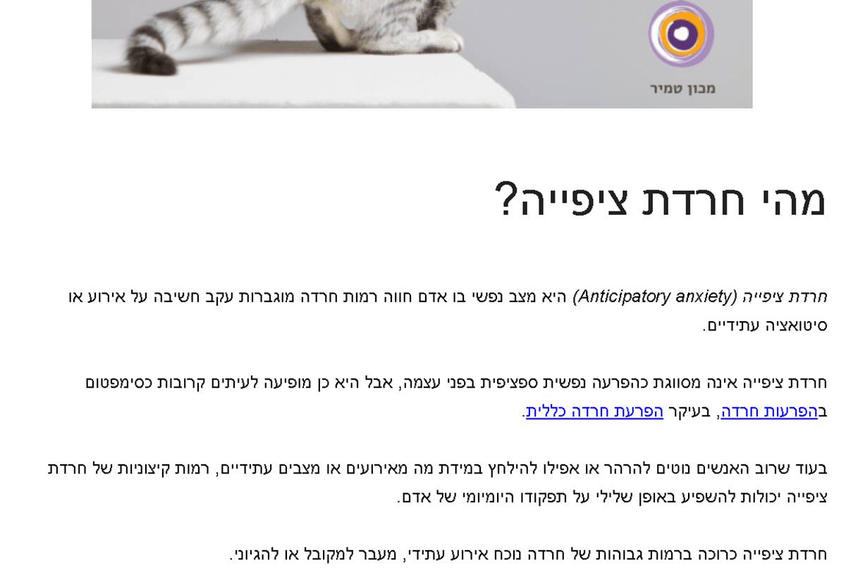 רבים מדווחים על חרדה. חרדה ממה שעוד לא קרה.