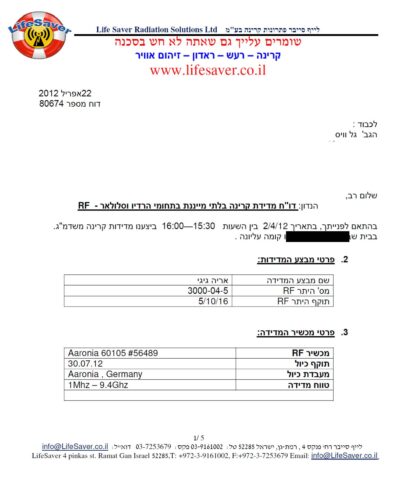 התחלתי בדוח מדידת קרינה של מודד מוסמך, שבוצעה בדירה שלי ב- 2012 (הייתי בריאה לחלוטין, כך חשבתי והרגשתי באותם ימים. הייתי מנהלת בתעשייה, יזמית פעילה ונמרצת, זריזה וחזקה ונראתי מאד מאד צעירה).