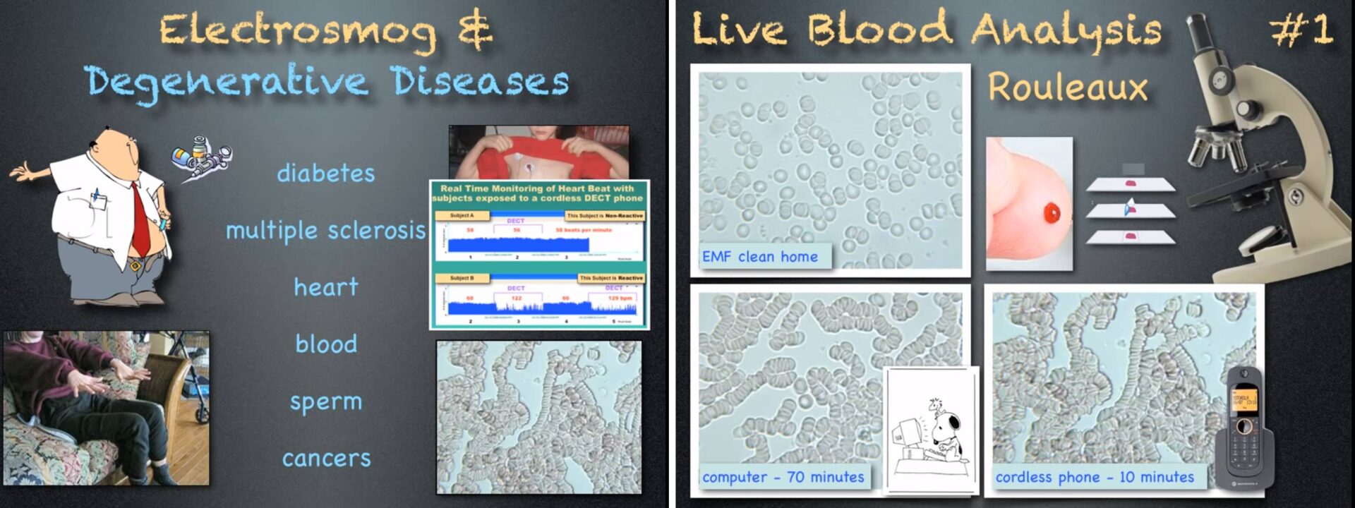 דר' מגדה חבס (וגם אחרים) הדגימה תמונת דם במיקרוסקופ שהראתה כי בעת חשיפה לקרינה סלולרית חלה הצטברות רולו (תאי הדם מתקבצים ונוזל הדם הופך צמיגי וסמיך – פגיעה באספקת חמצן לתאים ולרקמות).