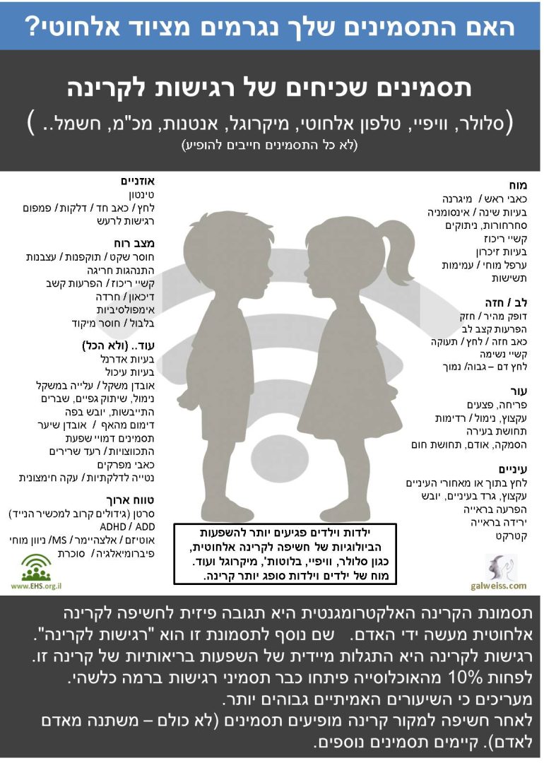 תסמינים כאלה עלולים להעיד על התחלת התפתחות תסמונת קרינה אלקטרומגנטית/ רגישות לקרינה.