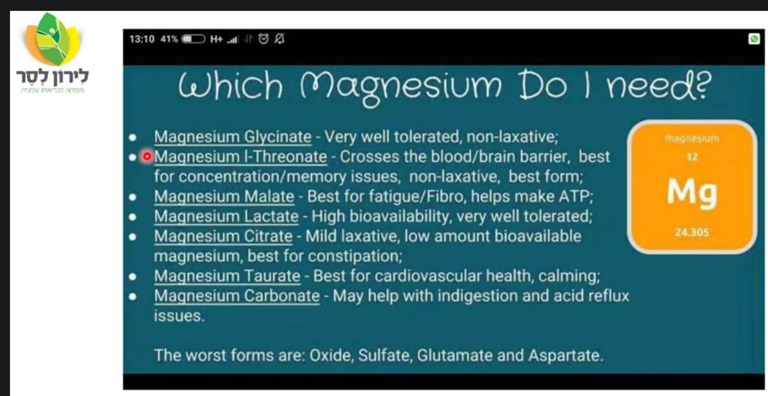 רשימה של סוגי מגנזיום – בשקף של לירון לסר