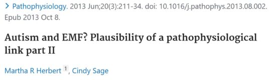 Herbert, Martha R., and Cindy Sage. "Autism and EMF? Plausibility of a pathophysiological link–Part I." Pathophysiology 20.3 (2013): 191-209.