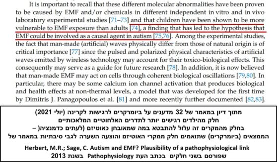 מתוך דוח ביואינישייטיב 2012 – דוח לגבי קשר בין אוטיזם לקרינה בלתי מייננת – Findings in Autism (ASD) Consistent with Electromagnetic Fields (EMF) and Radiofrequency Radiation RFR