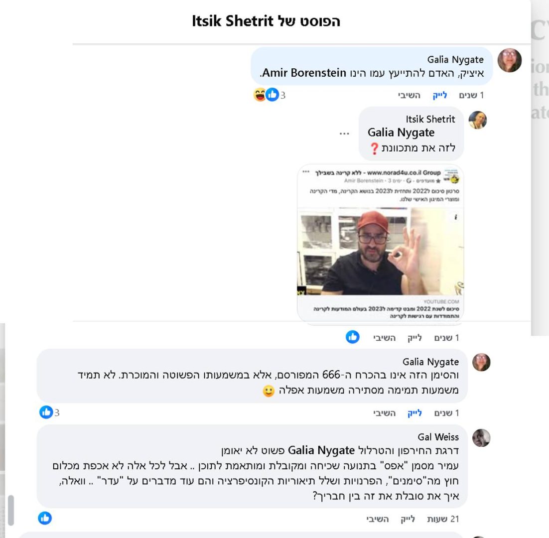 ועוד דוגמא, שעושה הרגשה ממש גרועה .. בהחלט הסתה (כמו שאני חוויתי כשאיימו עלי, גידפו וקיללו ולבסוף שלחו בריונים לביתי כדי "להשתיק" אותי בימי הקורונה ומחאת 5G, כשנאבקתי בשמועות ובתיאוריות הקונספירציה ההזויות)