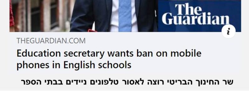 שר החינוך הבריטי, גאווין וויליאמסון, רוצה לאסר טלפונים ניידים בבתי הספר באנגליה, עקב בעיות משמעת. ההצעה היא שעות לימוד ללא סלולריים במתחם בתי הספר “mobile-free” כדי להרגיע את התלמידים ולהתגבר על הסחות הדעת. שימוש שגוי או שימוש יתר בסלולריים עלול להשפיע על הבריאות הנפשית והשלומות (wellbeing) אמר השר וסיכם “I want to put an end … המשך לקרוא הצעה לאסור סלולרי בבתי הספר באנגליה, איסור וויפיי במוסדות חינוך בקפריסין ובית חולים ללא וויפיי וסלולריים