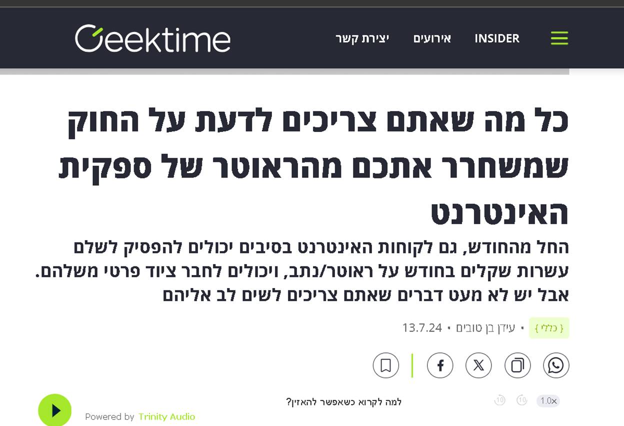 לקוחות האינטרנט בסיבים האופטיים יכולים לסרב לשלם שכירות של ראוטר/ נתב ולחבר ציוד פרטי. כך נקבע החודש. עידן בן טובים מסביר ב"גיקטיים" למה חשוב להתיחס.