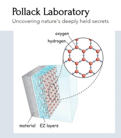 1. למים יש מצב רביעי – לא נוזל ולא מוצק אלא מעין ג’ל או קריסטל נוזלי (כמו חלבון ביצה) הנבנה סביב מבנים ומולקולות ביולוגיות. מצב זה נקרא “אזור הפרדה”-EXCLUSION ZONE או   EZ WATER,  הוא דוחף החוצה כל אטום אחר שמומס במים. במצב הרביעי, הופכים המים להיות H3O2 במקום  H2O.  רוב המים בתוך התאים הם במצב הרביעי. לפי פולאק, ניצול  תכונה זו תאפשר לסנן מי ים בכמות בלתי מוגבלת וללא תהליך אוסמוזה הפוכה היקר בו משתמשים כמתקני התפלה.