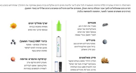לדוגמא, צילום מסך מחברה המציעה מכשיר למים אלקליים (בסיסיים) – זו לא המלצה, אלא דוגמא לטענות לגבי תוספות ותכונות מים במכשירים שונים לטיוב מים.