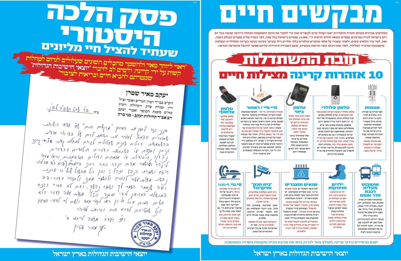 ונסיים בעלון הנחיות צמצום חשיפה לקרינה שמופץ בימים אלה במגזר החרדי – פרי פועלם של יוצאי הישיבות הגדולות, שהבינו שהקרינה גורמת לתחלואה הגוברת.