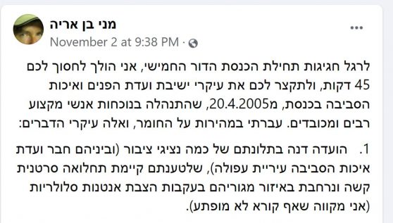 הפוסט פורסם בפייסבוק ואני מביאה אותו בלשונו של מני בן אריה: