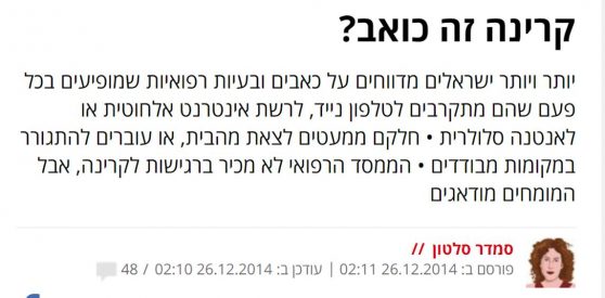 קרינה זה כואב? – כתבה בישראל היום, 2014