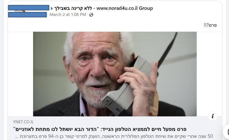 פרס מפעל חיים לממציא הטלפון הנייד (שהיום – ממליץ להתנתק ממנו)