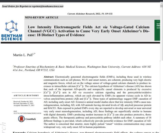 מאמר חדש של פרופ' מרטין פול שעבר ביקורת עמיתים – קרינה אלחוטית וסלולרית יכולה לגרום לדמנציה מוקדמת.