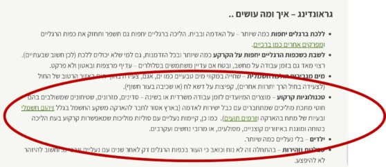 (אגב, בארה"ב יש בעיה של הליכה יחפים על האדמה כי זה יש תשתית חשמלית אחרת, תת-קרקעית, ללא כבלי הארקה, עם הרבה זרמים קרקעיים – בעיה קשה. לנו אין בעיה כזו)