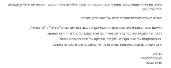 בתוכנית "מילה של רופא" בכאן 11, 10.3.2022