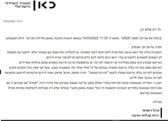 לא נראתה לנו התגובה .. הרי התאגיד משולם גם מהכיס שלנו ואמור לשרת את הציבור ..