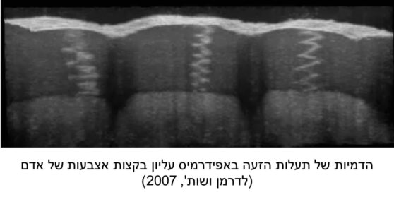 החוקרים – פרופ' יורי פלדמן, דר' פול בן ישי ונועה בצלאל – הדגימו כי איברונים בתעלות הזיעה שבשכבת העור העליונה בנויים כאנטנה סלילית (helical) שמגיבה לקרינה סאב- THz. הפרשת הזיעה אף היא משפיעה על תגובתיות ונקשרת לרמות סטרס (פיזי, רגשי ומנטלי).