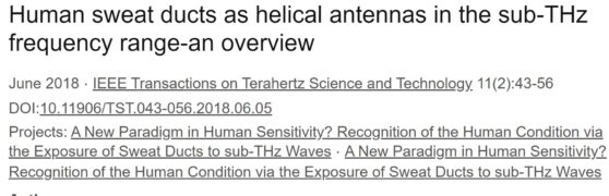 קישור למאמר מ- 2018 – תעלות הזיעה בעור בנויות כאנטנות ומגיבות לקרינה – מה יקרה בחשיפה לדור 5 (5G) ?