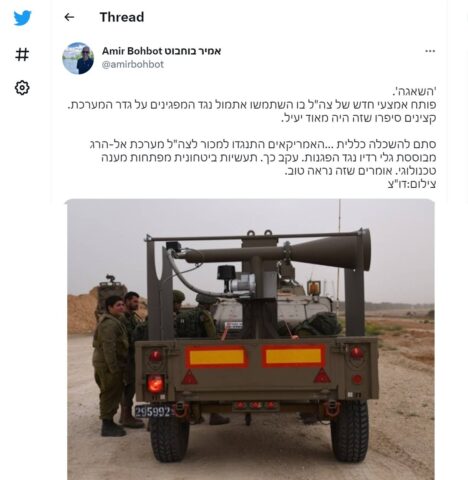 "האמריקאים התנגדו למכור לצה"ל מערכת אל-הרג מבוססת גלי רדיו נגד הפגנות. עקב כך. תעשיות ביטחונית מפתחות מענה טכנולוגי."